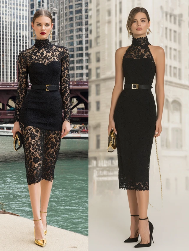 Why It Works: Lace adds texture and femininity to a timeless silhouette.
