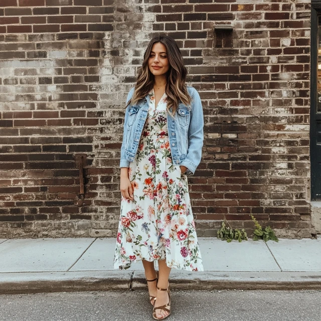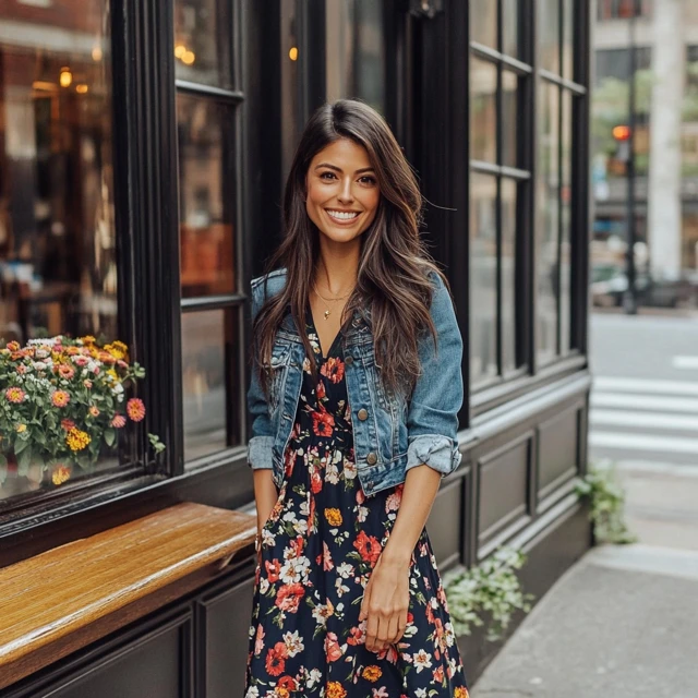 Why It Works: Feminine florals paired with denim give you softness and edge in one look.