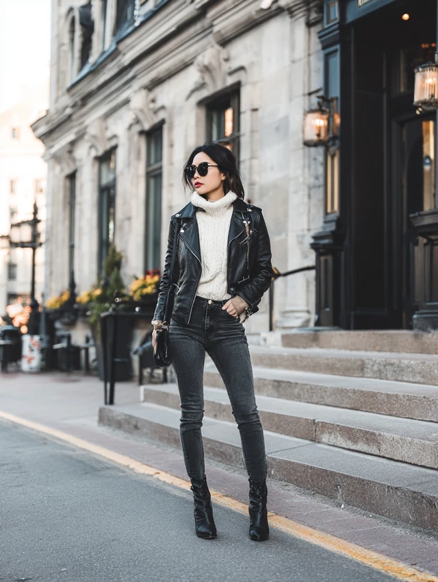 5. Leather Jacket + Skinny Jeans + Statement Boots