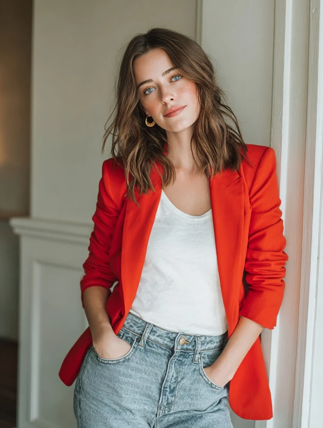 The red blazer is for women who want to blend confidence with sophistication. It’s bold enough to command attention but versatile enough to wear every day.