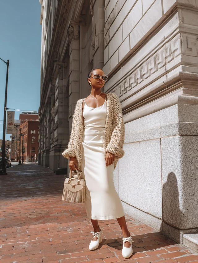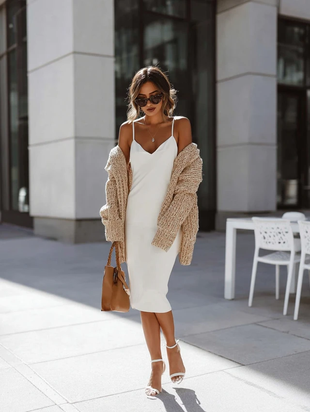 - Layers: Oversized sweaters, cardigans, or neutral-toned coats.